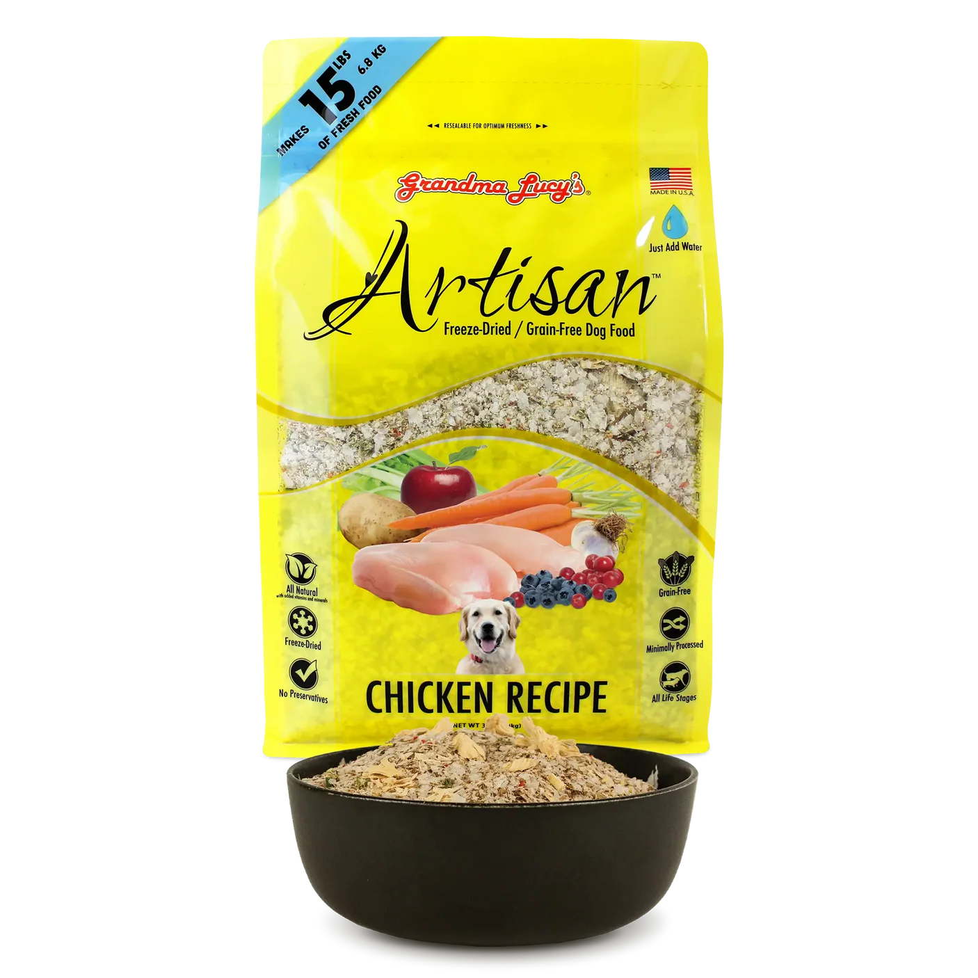 Artisan is our original food made with the highest quality whole ingredients, prepared in batches in our home kitchen in California. Artisan is the perfect blend of digestibility and palatability, making it the ideal way to introduce natural food into your pet's diet. This all-natural, grain-free formula is ideal for pets with food sensitivities or picky eaters. Your pet will give you extra kisses when they think you've worked hard on the stove to cook this delicious stew for them (we won't tell them all you have to do is add warm water)!
